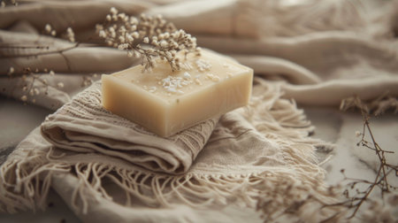 Natural Handmade Soap Bar with Dried Flowers on Linen
