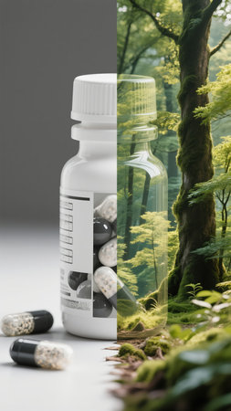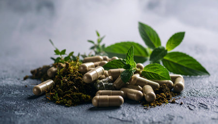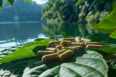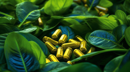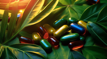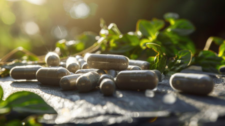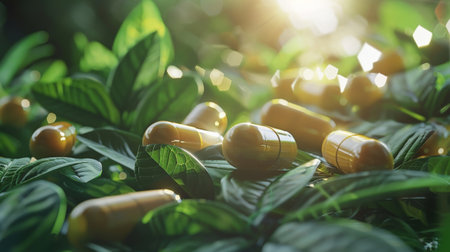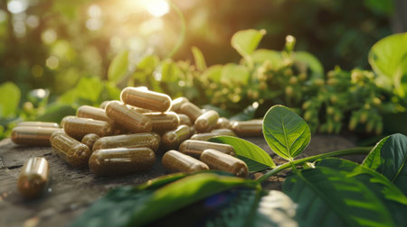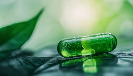 Natural vitamin capsules with green leaves a fresh approach to alternative medicine solutions
