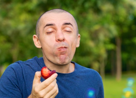 Silly little preschooler girl having fun, grimasing, playing with her face, pinching nose. On a sunny day, close up.