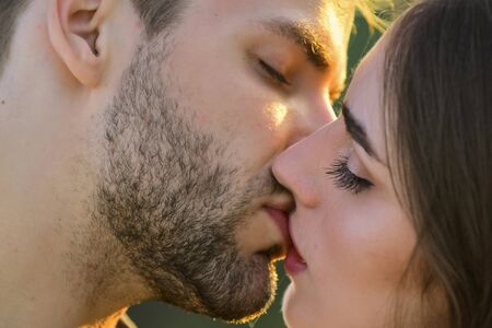 Softer than silk. delicate gorgeous kiss. man kiss woman. couple in love. I love you. Closeup mouths kissing. romantic relations. married couple kissing love on honeymoon. kissing couple portrait