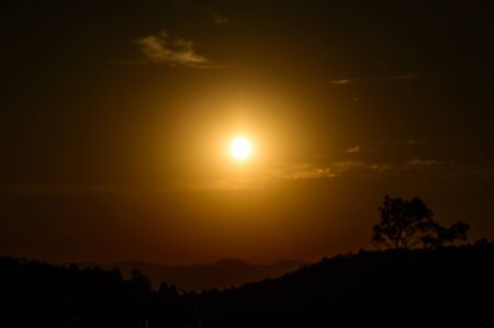 Beautiful sunset with clouds and sun in the sky. Nature background.
