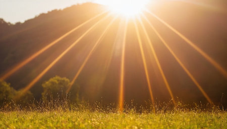 sunset on the mountain with ray lighting