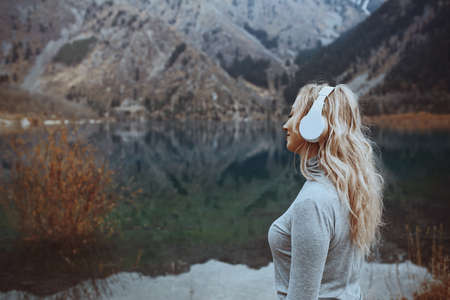 Wanderlust concept with young woman enjoying the peace around her