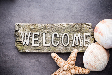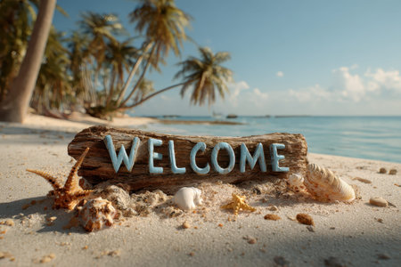 Welcome Sign tropical signage in indian ocean summertime activities location