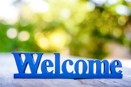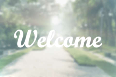 Welcome word on blurred nature background. Travel and Vacation concept.