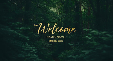 Enchanting postcard with a magical background and elegant golden text saying welcome