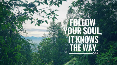 Motivational and inspirational quote - Follow your soul, it knows the way. Blurred vintage styled background.