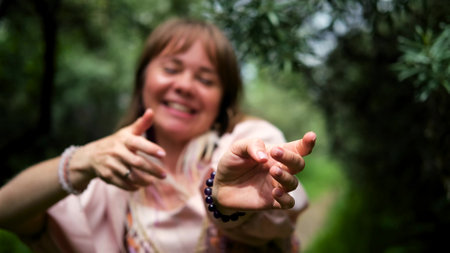 Stock photo of young smiley woman enjoying a day in the countryside.