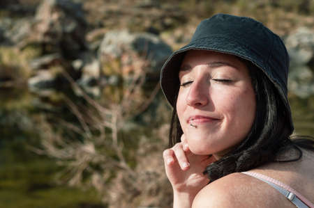 Stock photo of young smiley woman enjoying a day in the countryside.