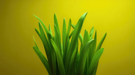 A vibrant display of lush green plant leaves set against a cheerful yellow background, perfect for conveying themes of freshness, nature, and tranquility in design.