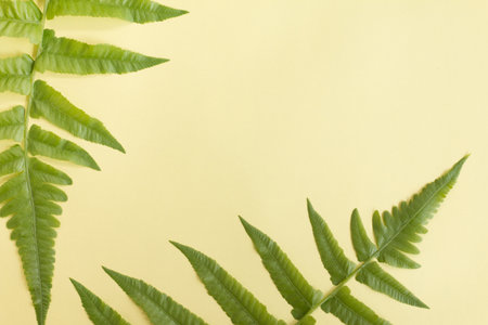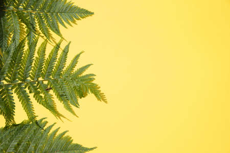 Fern leaves on a yellow background. Place for copy space