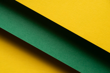 Yellow, forestgreen color paper background. Geometric flat lay. Empty space on monochrome cardboard.