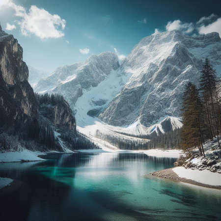 Beautiful alpine landscape with snow-capped mountain peaks.