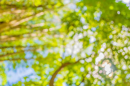 Abstract blurred nature background with bokeh for creative designs. Green leaves bokeh out of focus background from nature forest.
