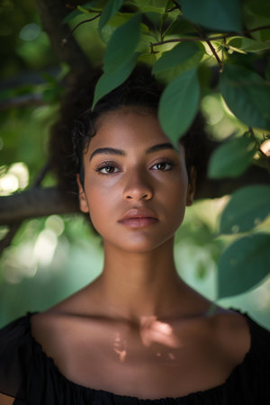 Beauty portrait of the serene elegance of a young diverse woman isolated from the background
