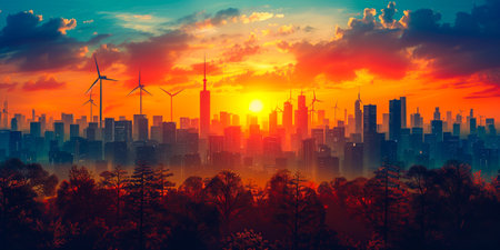 A breathtaking image showcasing a city skyline embracing eco-friendly initiatives with a green horizon.