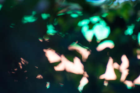 Sun shining through green leaves creating lens flare bokeh