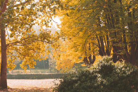 Trees of the park with yellowed leaves, outdoors