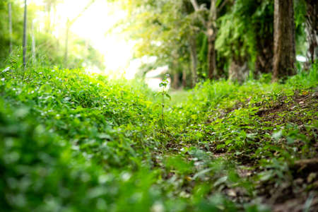 Forest trees. nature green wood sunlight backgrounds. Path in forest.