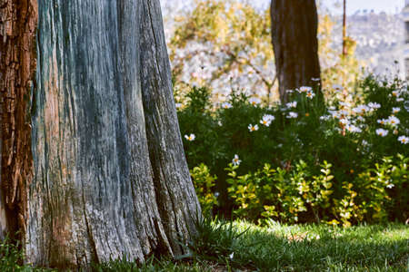 beautiful nature background in a park with grass.