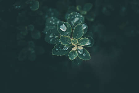 Green leaves. Low key modern style toned background image
