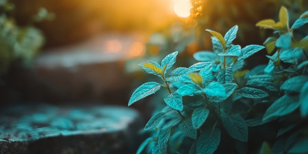 Close-Up of Vibrant Blue Leaves Illuminated by Golden Sunlight, Capturing Nature s Tranquility