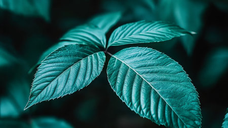A moody close-up of green leaves against a dark background, highlighting their texture and natural beauty. The image is perfect for themes related to nature, botany, and minimalism.