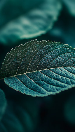 Intricate Leaf Venation and Texture Showcasing Botanical Beauty in Dark Nature Background