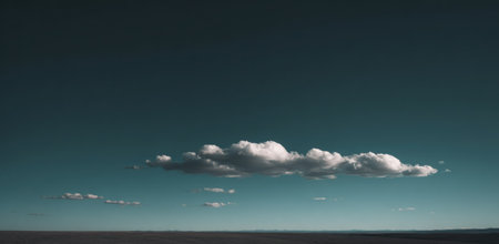 A single cloud formation is captured against a gradient blue sky, emphasizing natural light and shadow. The image presents a clean, minimalist style with ample copy space. This composition could be used for various commercial projects related to nature, weather, or conceptual themes.