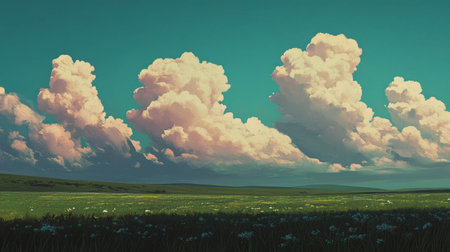 A captivating view showcasing a dramatic sky filled with billowing clouds above a serene landscape. This image evokes feelings of tranquility and connection to nature.