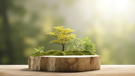 Empty podium of Natural placement stand spring and summer concept. Generative Ai.