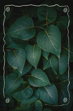 Abstract nature background with green plant leaves and creative frame for design