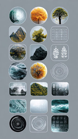 Vegetation, soil and sky in a grid composition