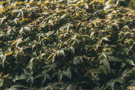 Dark leaf nature background of small plants – Lush and fresh forest or garden vegetation in dark tones