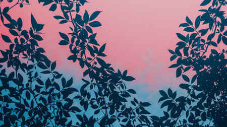 Silhouetted Leaves Against Gradient Pink and Blue Sky Background in Tranquil Nature Scene