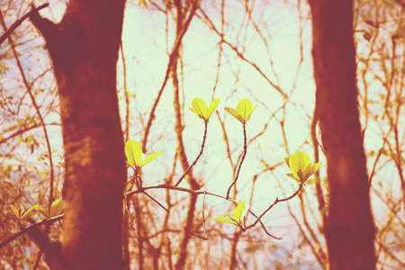 Vintage photo of leaves bud in sunlight