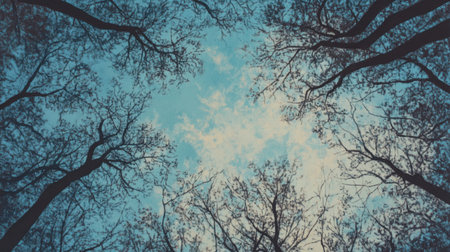 Looking Up at a Tall Tree with Lush, Green Leaves, Creating a Circular Frame of Nature s Beauty
