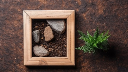 Nature versus technology. Minimal abstract idea of a nature captured in photo frame in landscape. Environmental protection or tranquility and peace of mind concept. Copy space.