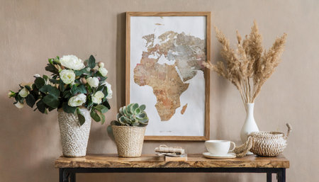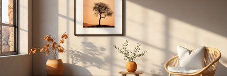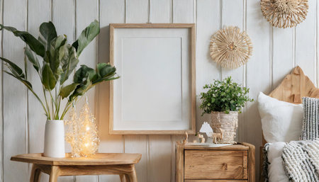 Mockup frame in interior background, room in warm tone, Scandi-Boho style, Generative AI
