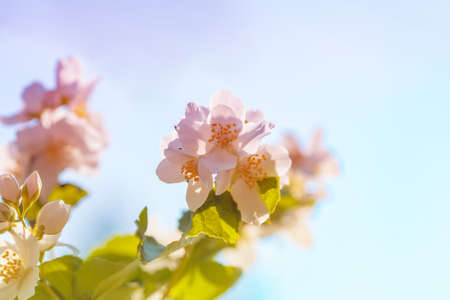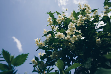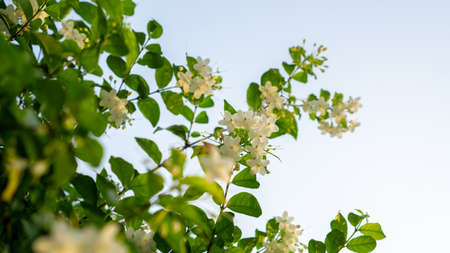 Jasmine spring flowers blossoming in sunny summer day
