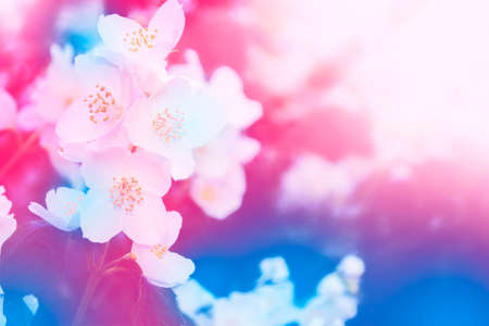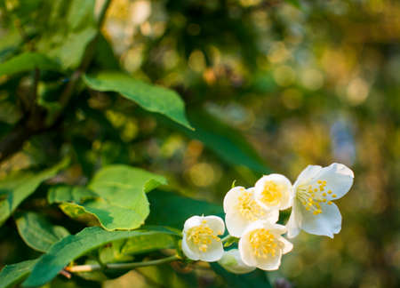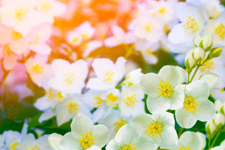 Jasmine flowers in the sunlight. Summer background. High quality photo
