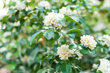 jasmine blooming selective focus in a garden under the sunlight with a blurry background