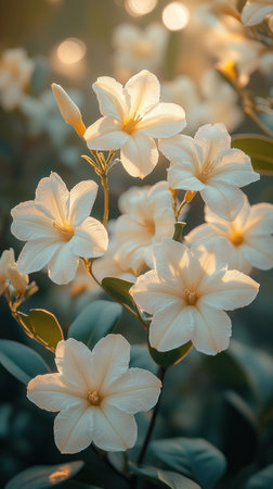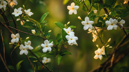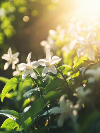 jasmine white flowers in sunset light, 4k photo
