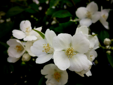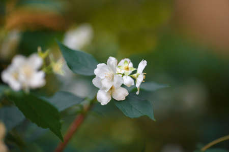 Flowered mock-orange (Philadelphus) closeup.White flowers of Philadelphus. Philadelphus is ornamental flowering shrubs in the garden