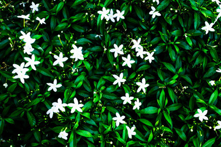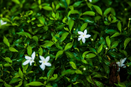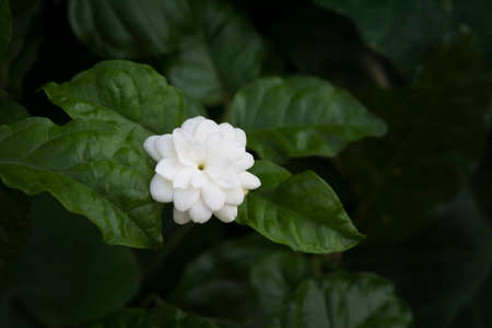 beautiful white small jasmine flower on the bush in the garden