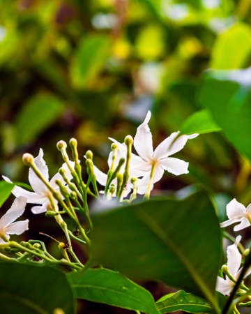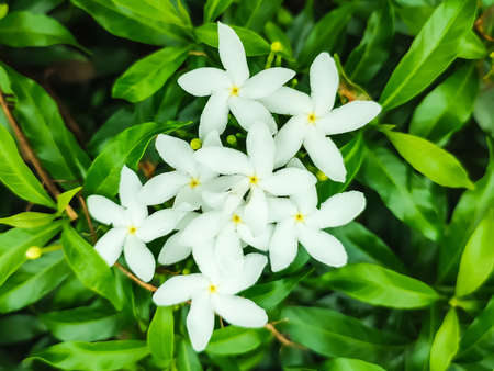 White Jasmine flower blooming in the garden with nature background.