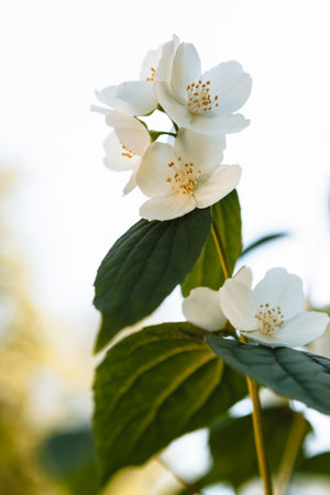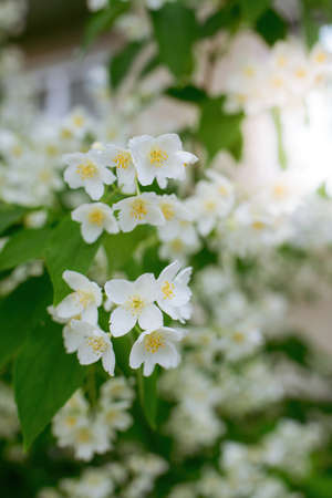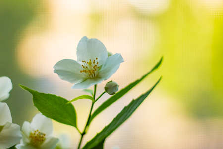 Beautiful jasmine flower in the park. Bright summer.