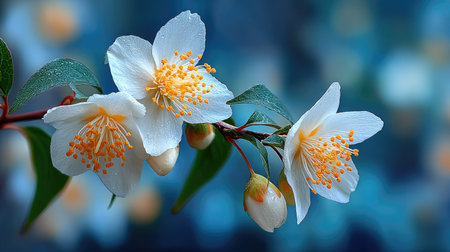 Jasmine spring flowers with raindrops