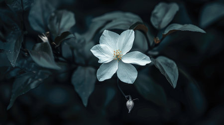 Beautiful close up of delicate white flowers against a dark background, emphasizing the elegance of nature with a serene and peaceful vibe