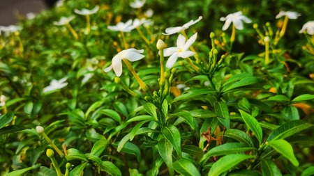 Jasmine flower blooming in the garden with nature background.